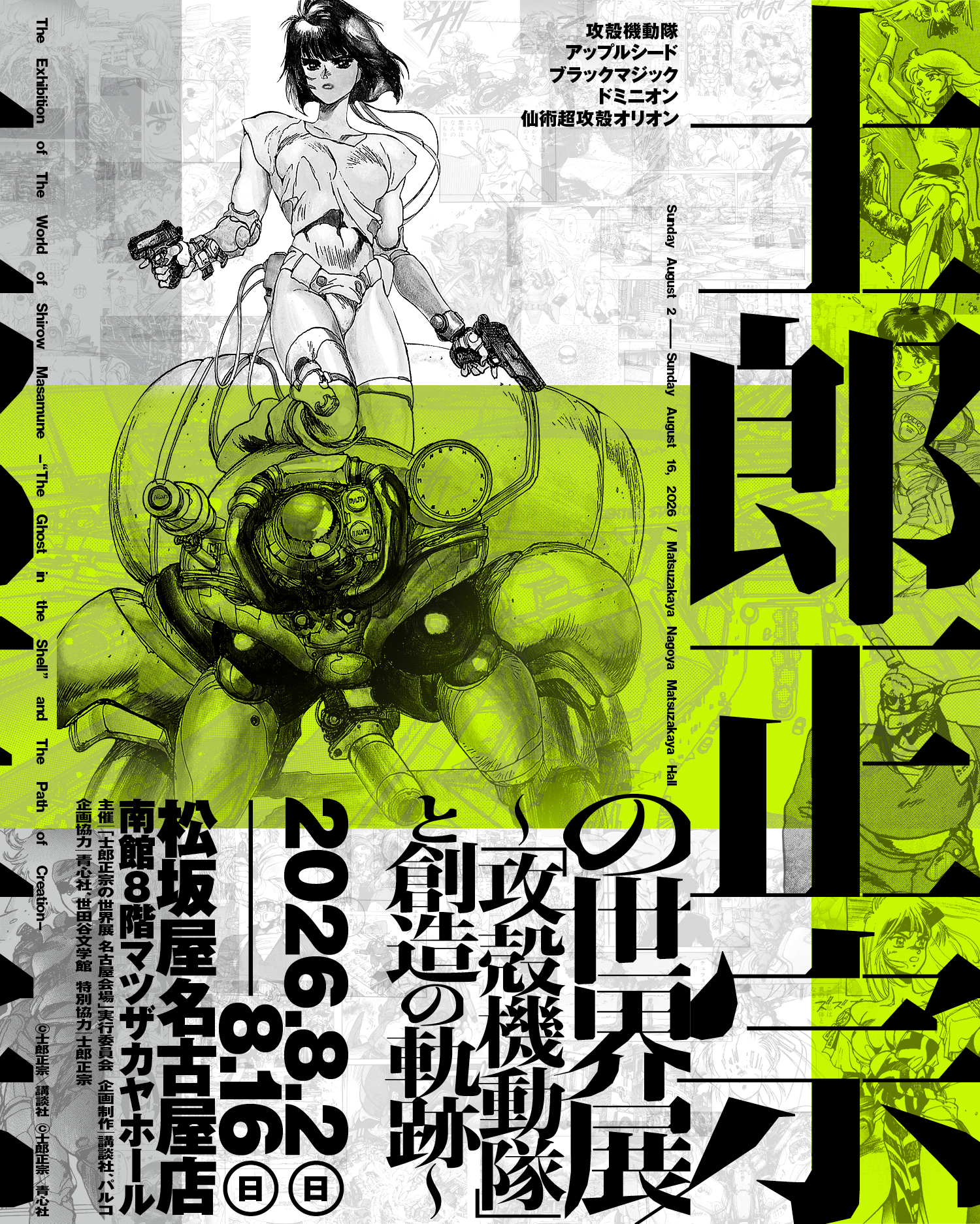 株式会社パルコは、株式会社講談社、「士郎正宗の世界展 名古屋会場」実行委員会とともに、東京・大阪で累計6.5万人超を動員した話題の展覧会【士郎正宗の世界展~「攻殻機動隊」と創造の軌跡~】を、2026年8月2日(日)から8月16日(日)まで、松坂屋名古屋店 南館8F マツザカヤホールにて開催いたします。東京・世田谷文学館では5.5万人を越える動員を記録し、大阪・心斎橋PARCOでも大きな反響を呼んだ本展が、ついに東海エリアに初上陸いたします。